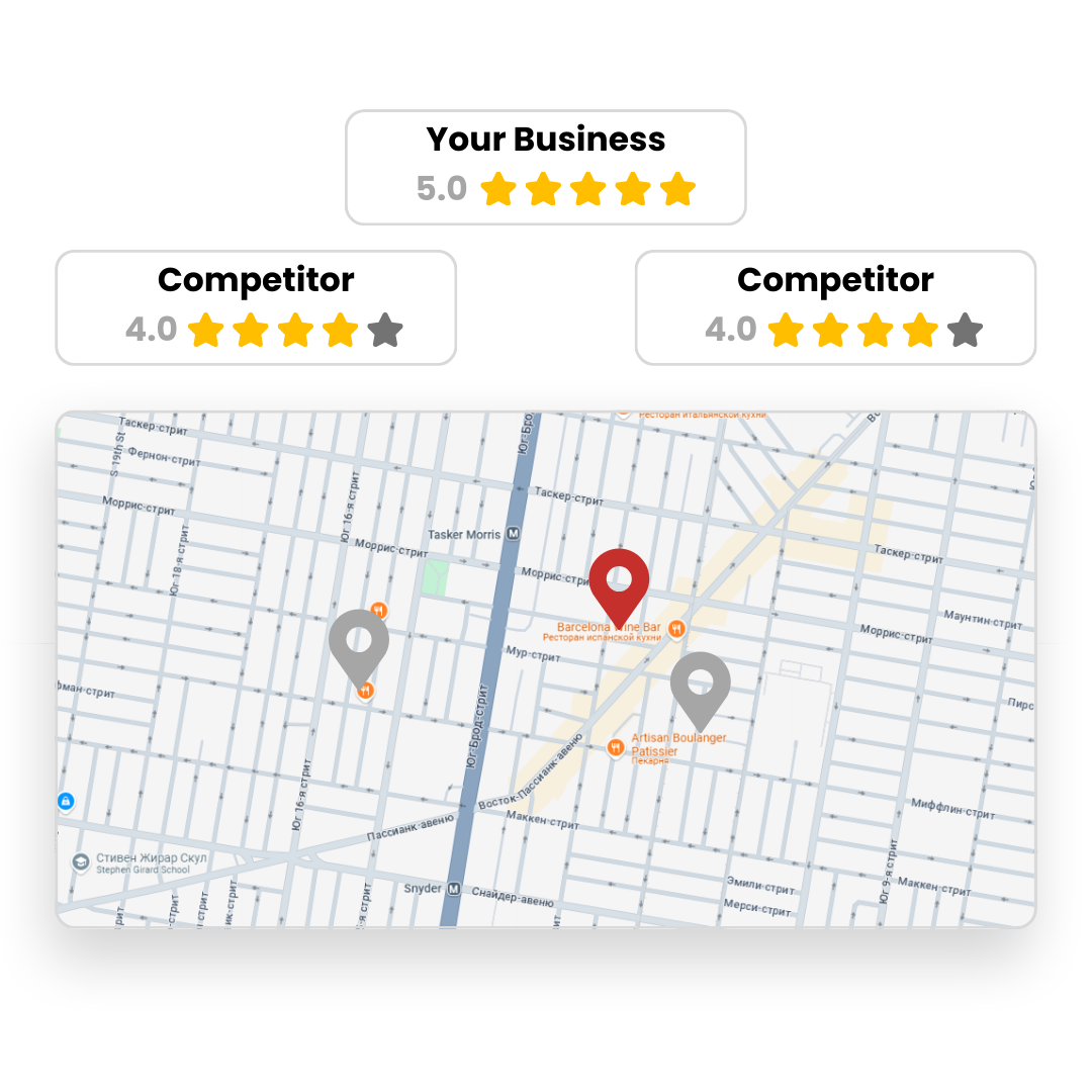 We design strategies specific to your city, competition, and services so you own your entire local area.